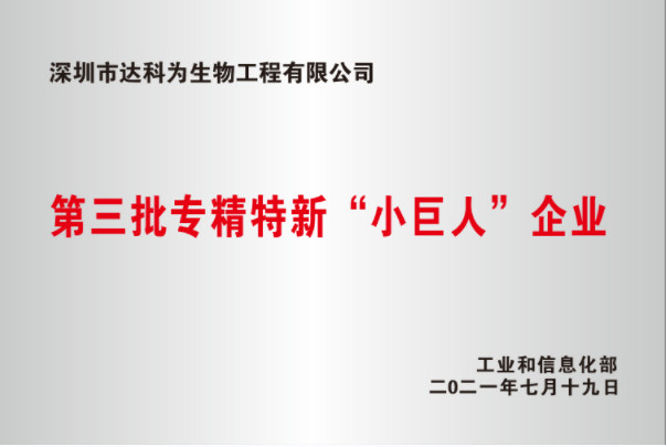 2021-01 2021年生物工程P2實驗室啟用,同年入選專精特新小巨人企業